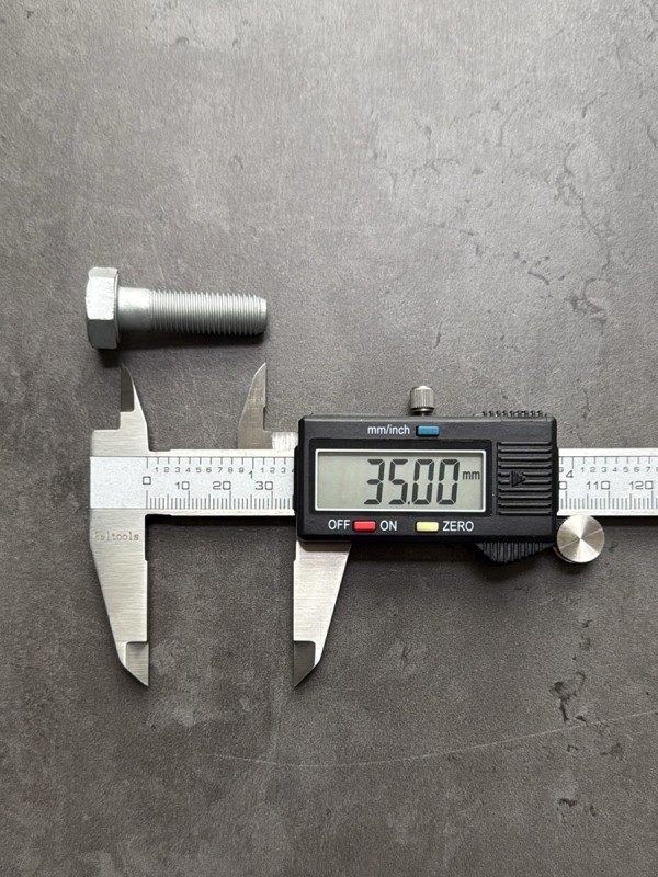 Болт с шестигранной головкой, высокопрочный, мелкий шагом резьбы. Стандарт: таблица FIAT-ВАЗ 10312. Диаметр резьбы: 12 мм. Шаг резьбы: 1,25 (мелкий). Длина болта: 25 мм. Длина резьбы: 25 мм. Размер "под ключ": 19 мм. Класс прочности: 10.9. Покрытие: цинк-ламель. В соответствии со стандартами, длина болта измеряется от опорной части головки до конца фаски, которой завершается его резьбовой стержень.