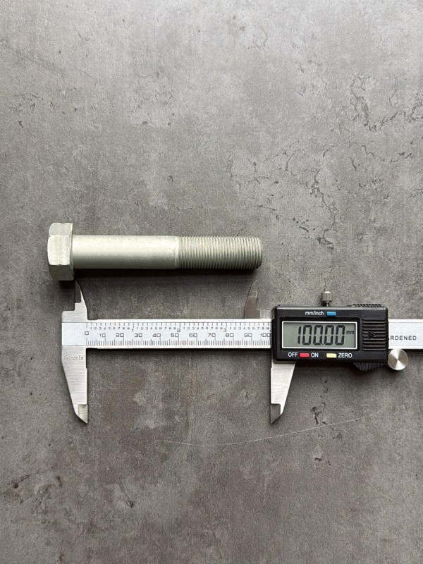 Болт с шестигранной головкой, высокопрочный, мелкий шагом резьбы. Стандарт: таблица FIAT-ВАЗ 10312. Диаметр резьбы: 12 мм. Шаг резьбы: 1,25 (мелкий). Длина болта: 25 мм. Длина резьбы: 25 мм. Размер "под ключ": 19 мм. Класс прочности: 10.9. Покрытие: цинк-ламель. В соответствии со стандартами, длина болта измеряется от опорной части головки до конца фаски, которой завершается его резьбовой стержень.