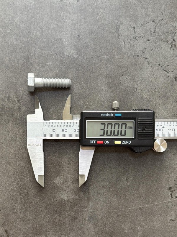 Болт с шестигранной головкой. Стандарт: таблица FIAT-ВАЗ 10312. Заводской номер : 00001-0055418-31. Длина болта: 120 мм. Диаметр резьбы: 12 мм. Шаг резьбы: 1,25 (мелкий). Длина резьбы: 30 мм. Размер "под ключ": 19 мм. Класс прочности: 10.9. Покрытие: цинк-ламель. В соответствии со стандартами, длина болта измеряется от опорной части головки до конца фаски, которой завершается его резьбовой стержень.