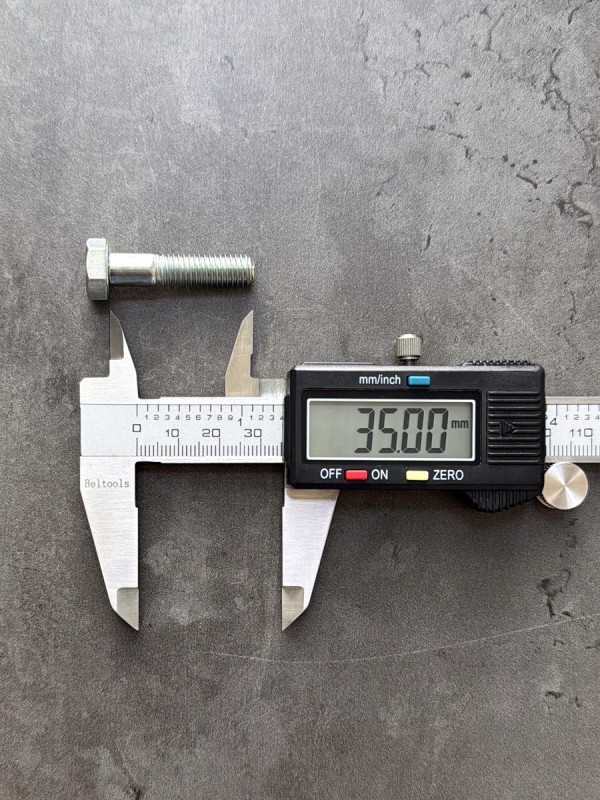 Болт с шестигранной головкой, высокопрочный, мелкий шагом резьбы. Стандарт: таблица FIAT-ВАЗ 10312. Диаметр резьбы: 12 мм. Шаг резьбы: 1,25 (мелкий). Длина болта: 25 мм. Длина резьбы: 25 мм. Размер "под ключ": 19 мм. Класс прочности: 10.9. Покрытие: цинк-ламель. В соответствии со стандартами, длина болта измеряется от опорной части головки до конца фаски, которой завершается его резьбовой стержень.