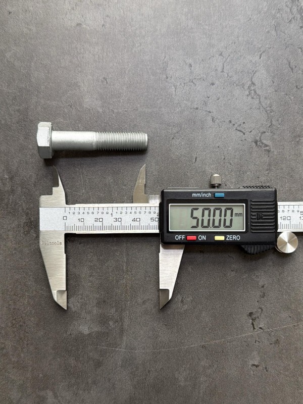 Болт с шестигранной головкой, высокопрочный, с мелким шагом резьбы. Болт российского производства. Стандарт: ГОСТ 7798-70. Можно использовать, как альтернативу Din 960. Диаметр резьбы: 10 мм. Шаг резьбы: 1,25. Длина болта: 50 мм. Длина резьбы: 26 мм. Размер "под ключ": 17 мм. Класс прочности: 10.9. Покрытие: цинк-ламель. В соответствии со стандартами, длина болта измеряется от опорной части головки до конца фаски, которой завершается его резьбовой стержень.